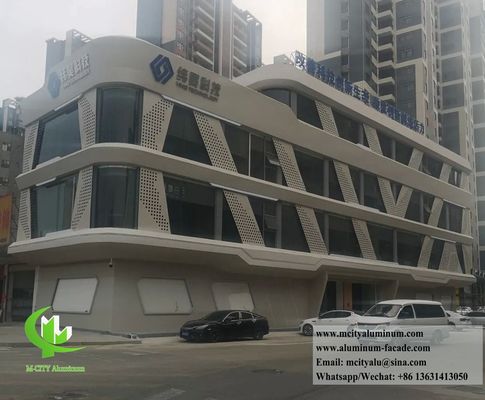 La fabbrica di alluminio M-City produce vari pannelli di metallo per facciate con disegni di perforazione o disegni di taglio laser.